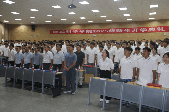 9月12日上午,雷竞技官网在线2025级新生开学典礼在教三楼109圆满举行。来自五湖四海的414名本、硕、博新生,怀揣对地球科学领域的探索热忱齐聚一堂,共同开启学业新征程。中国科学院院士谢树成教授、学院全体领导、各系主任、2025级新生班主任以及全体新生一同见证了这一梦想启航的时刻。开学典礼由学院党委副书记李欢欢主持。