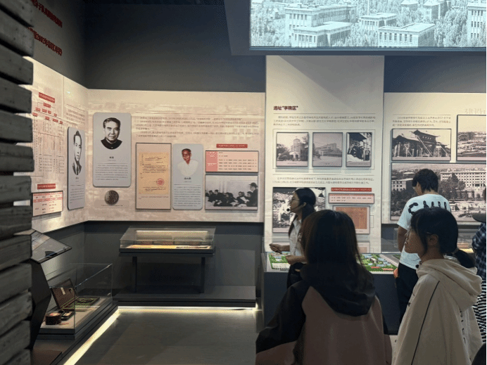 在团支书龙金艳同学的引导下,团员们沿着 “抗战传承-拼搏精神-文化自信” 的逻辑主线,开启了校史馆的深度研学之旅,让每一处展区都成为主题学习的生动课堂。
